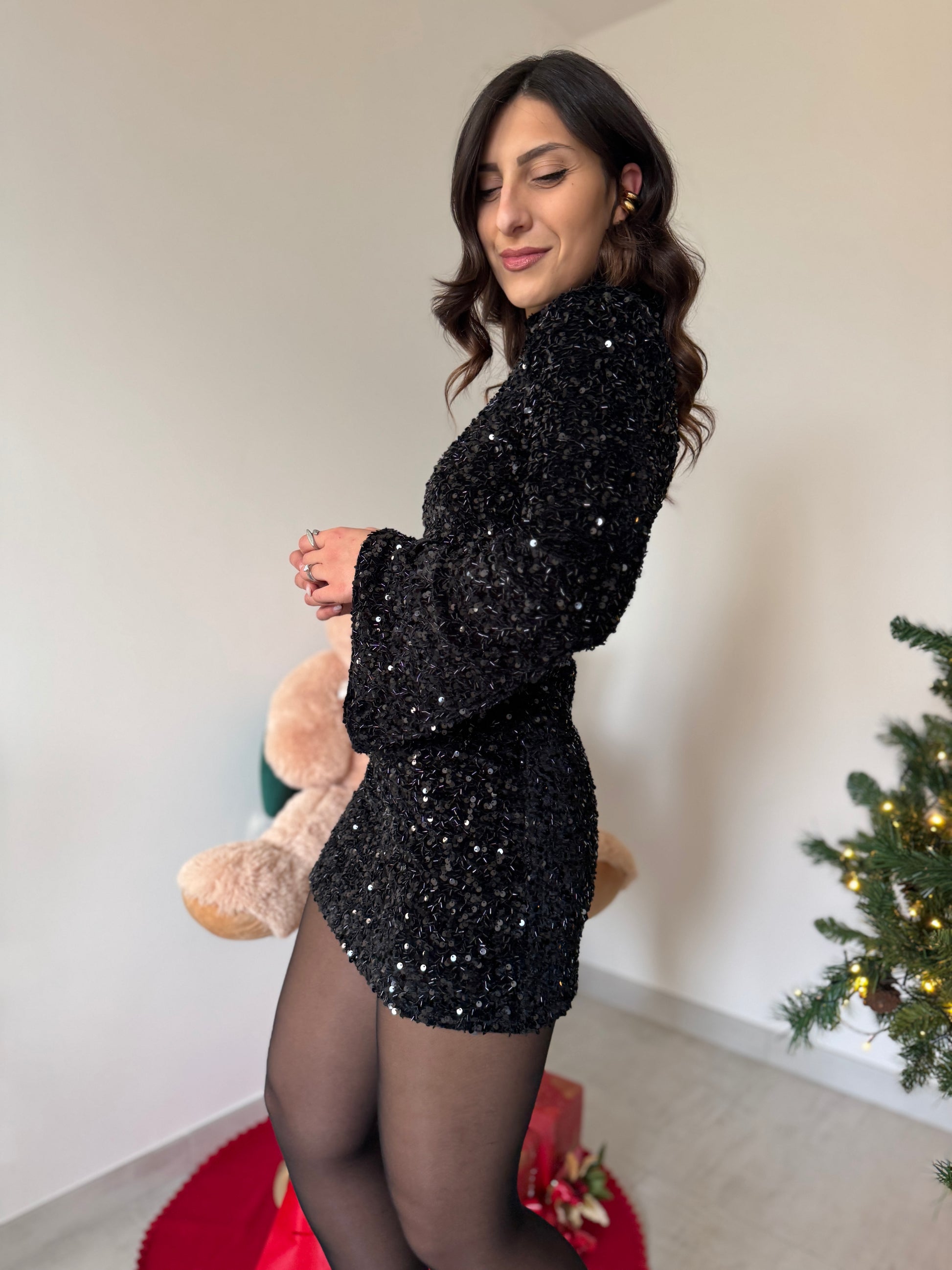 Abitino stretto di paillettes con chiusura lungo la schiena. Unica variante colore