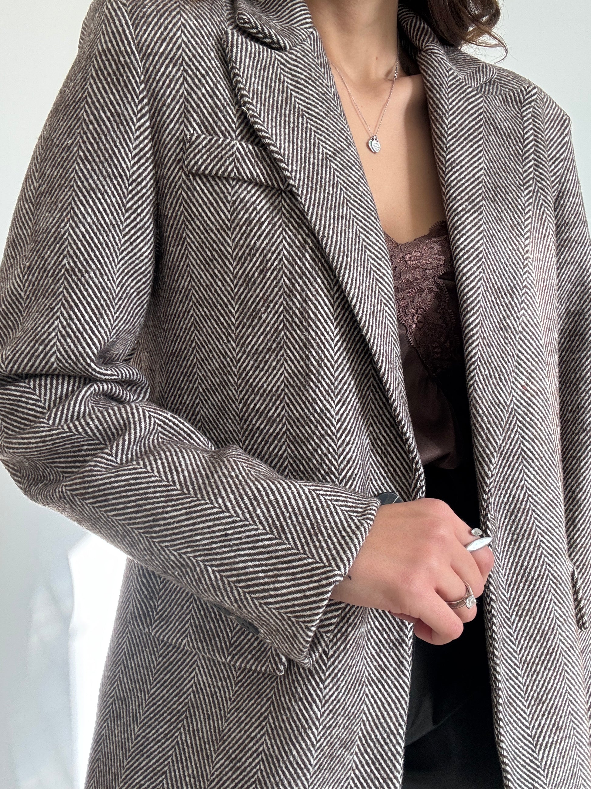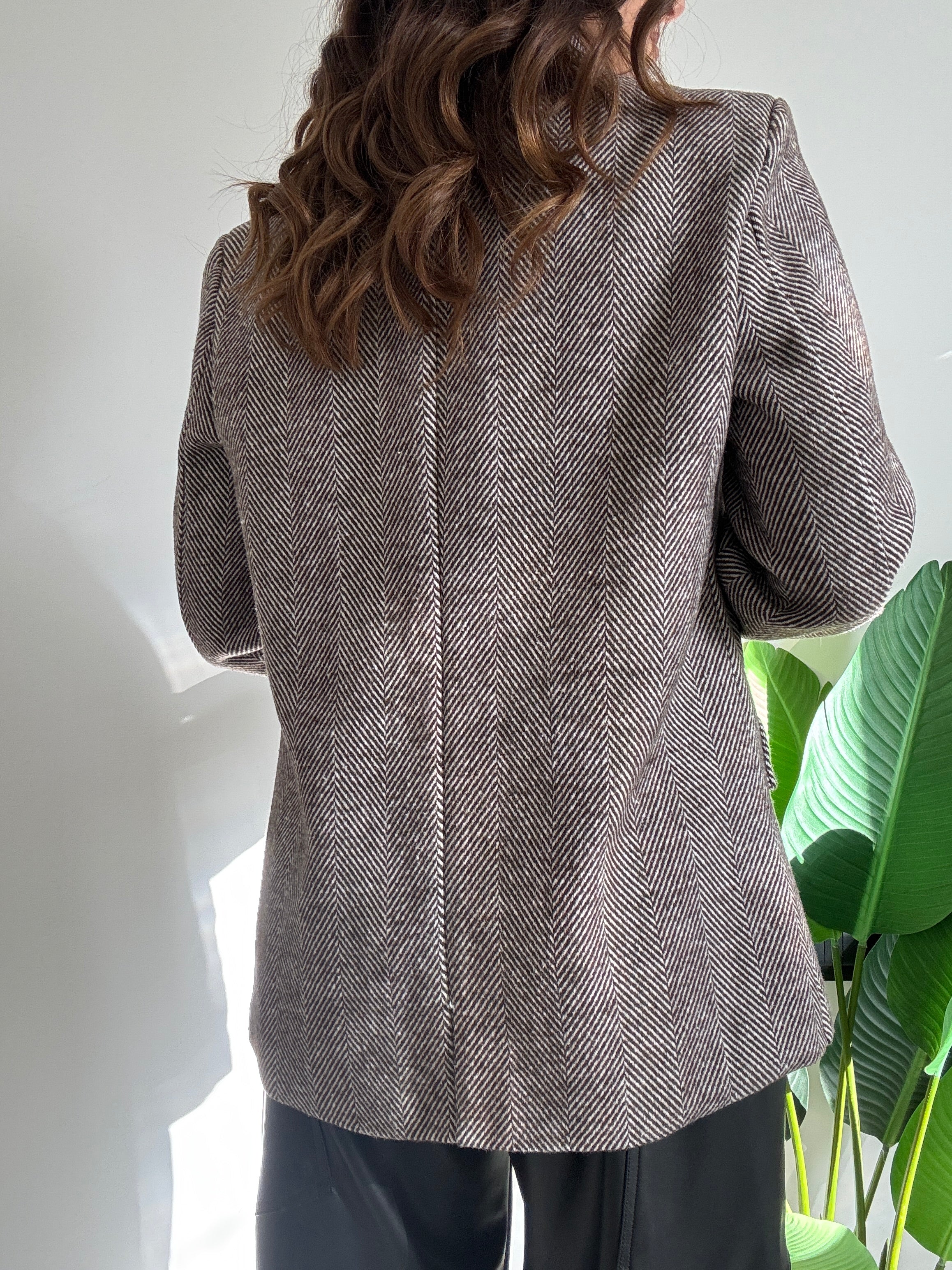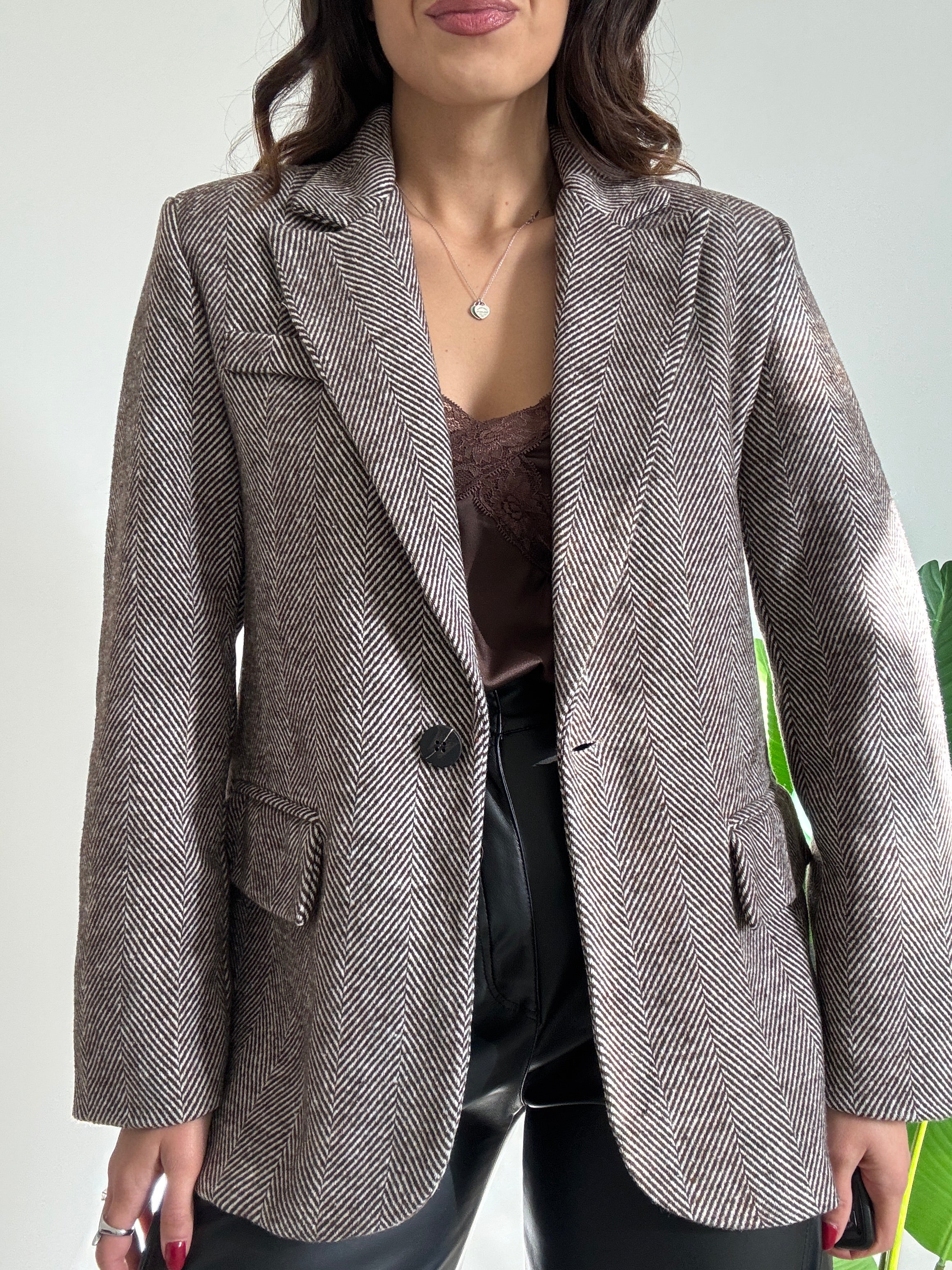 Giacca modello regular con spalline, tasche a filo, fodera interna, bottone centrale di chiusura e polsini rifiniti. Unica variante colore.