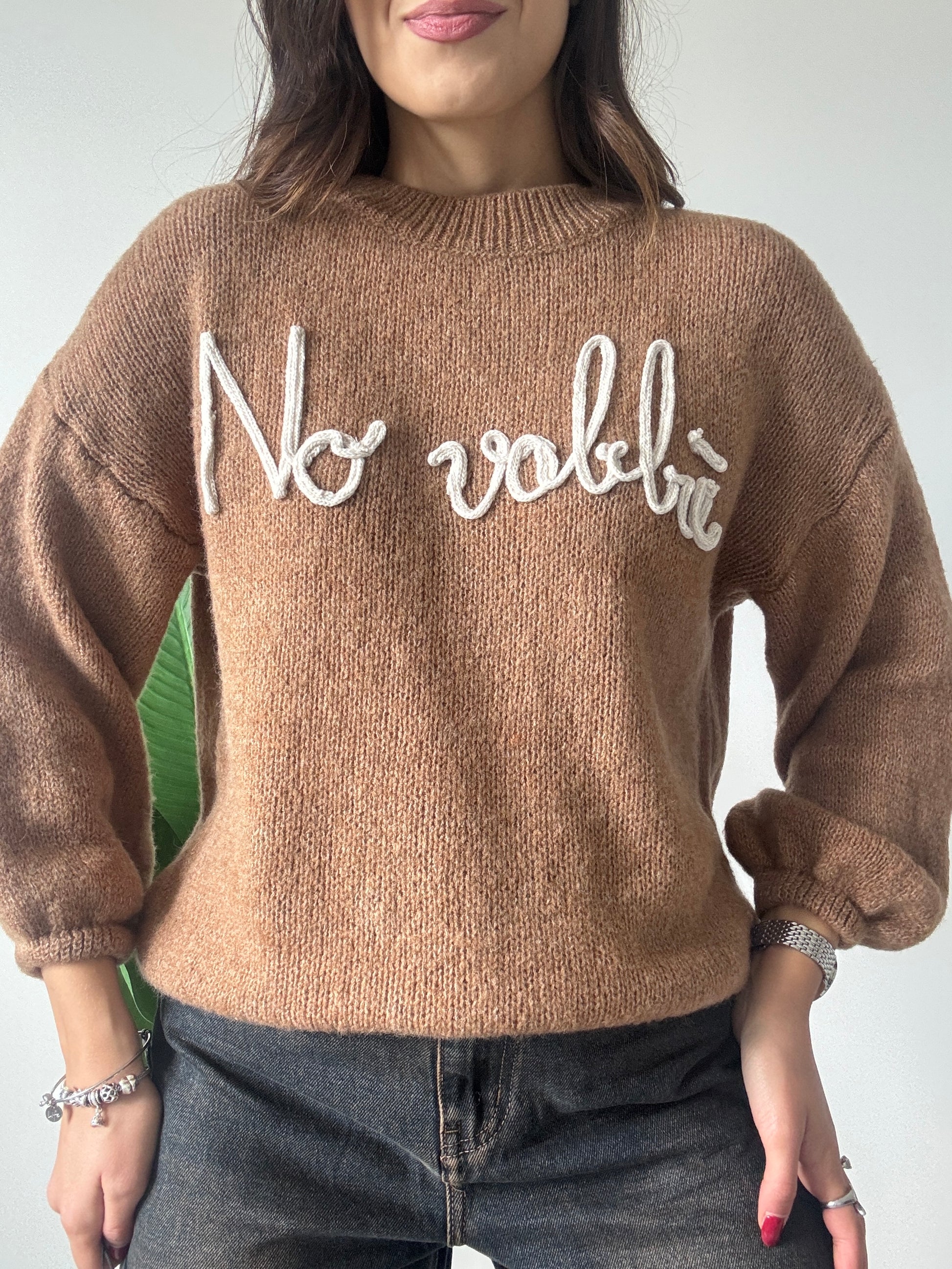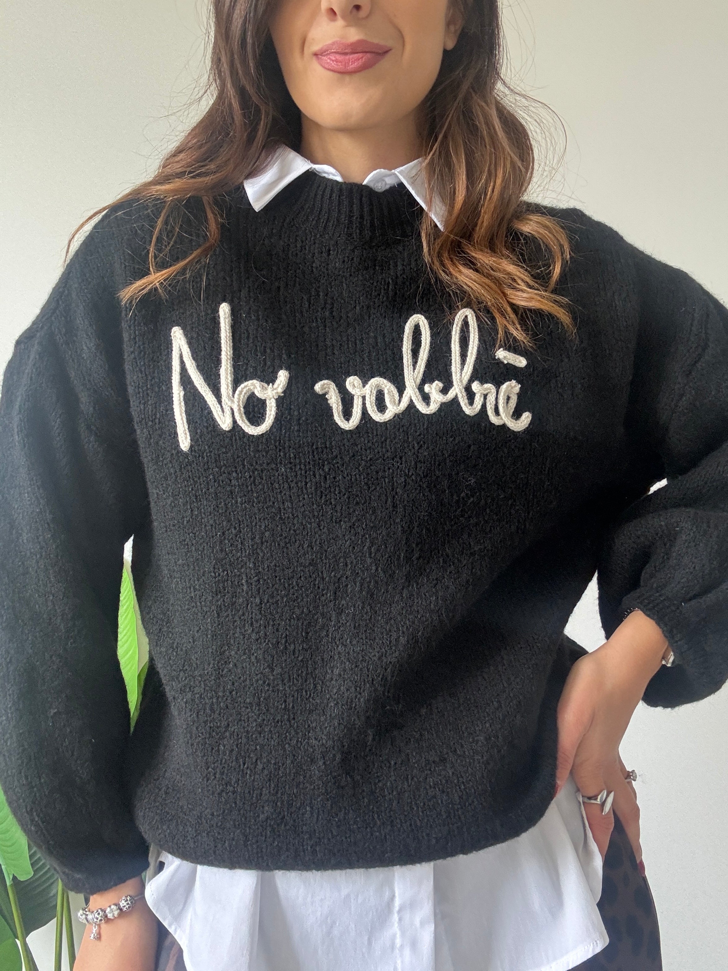 Pull over elasticizzato con collo rifinito, manica a palloncino con elastico e scritta centrale ricamata "No Vabbè".