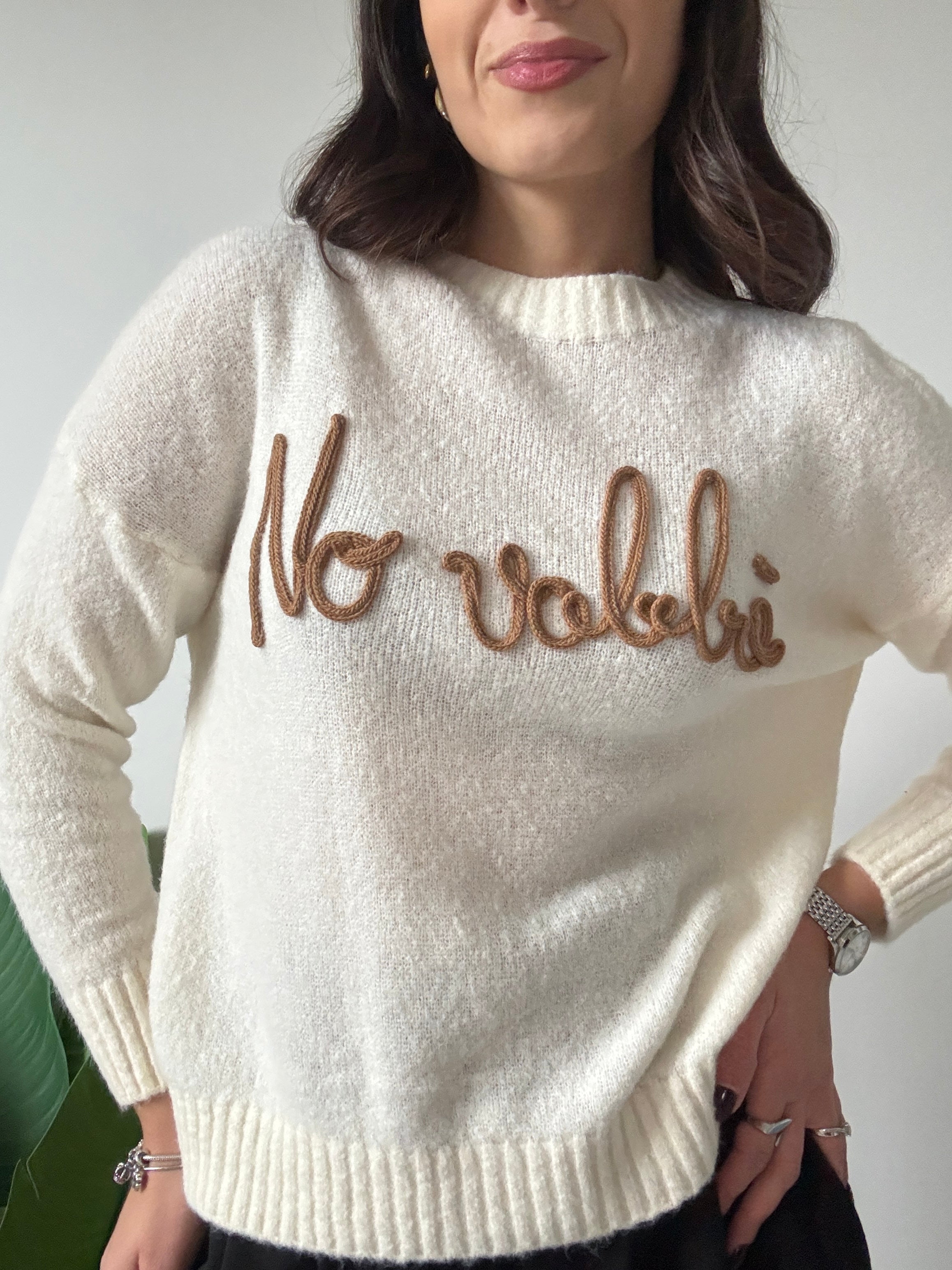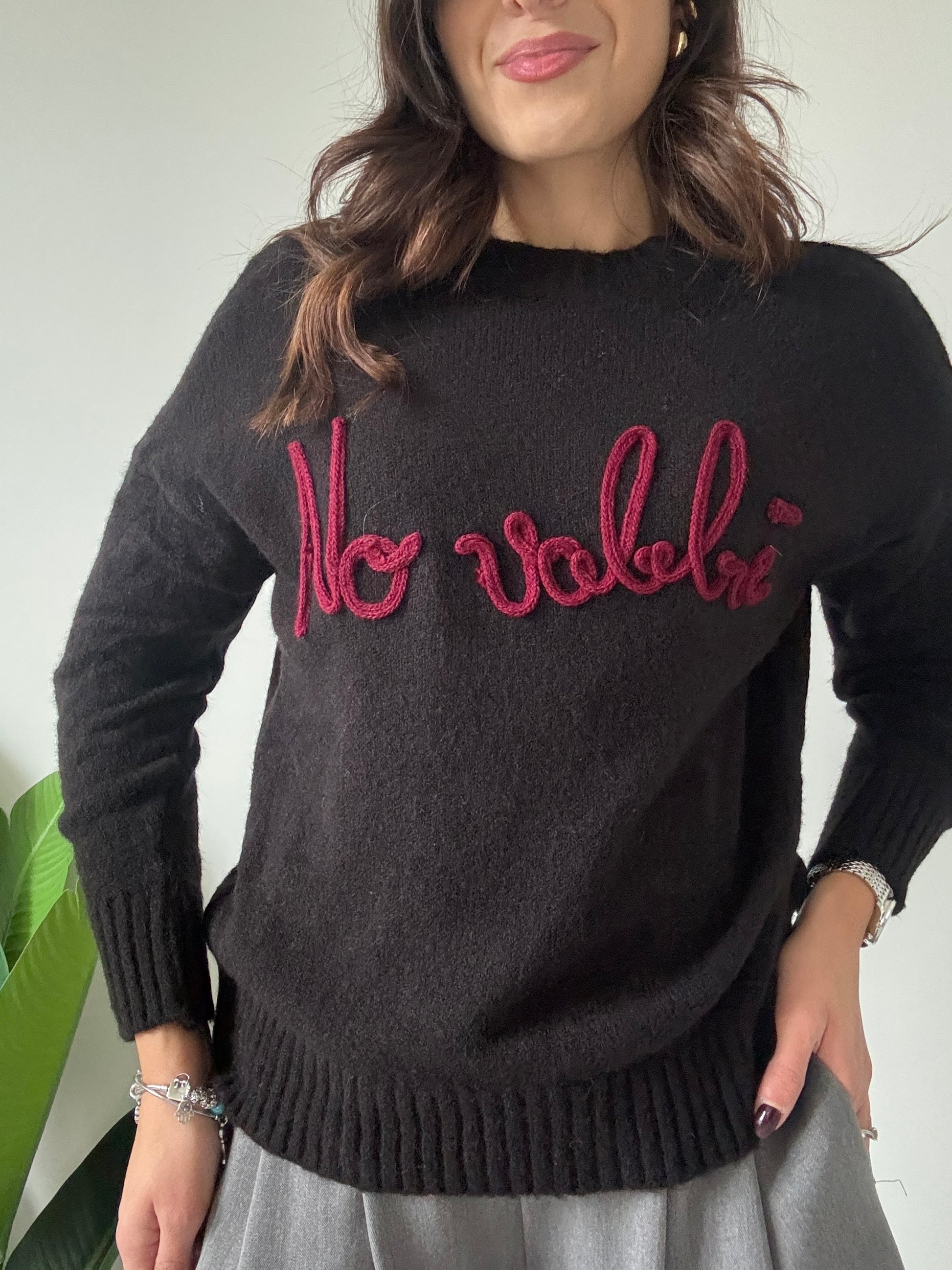 Pullover a tinta unita elasticizzato con collo a giro, manica con polsino e scritta centrale "No Vabbè".