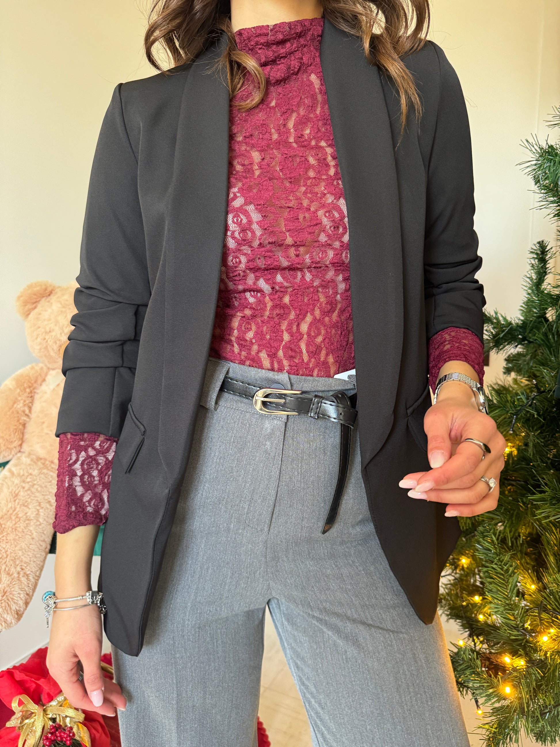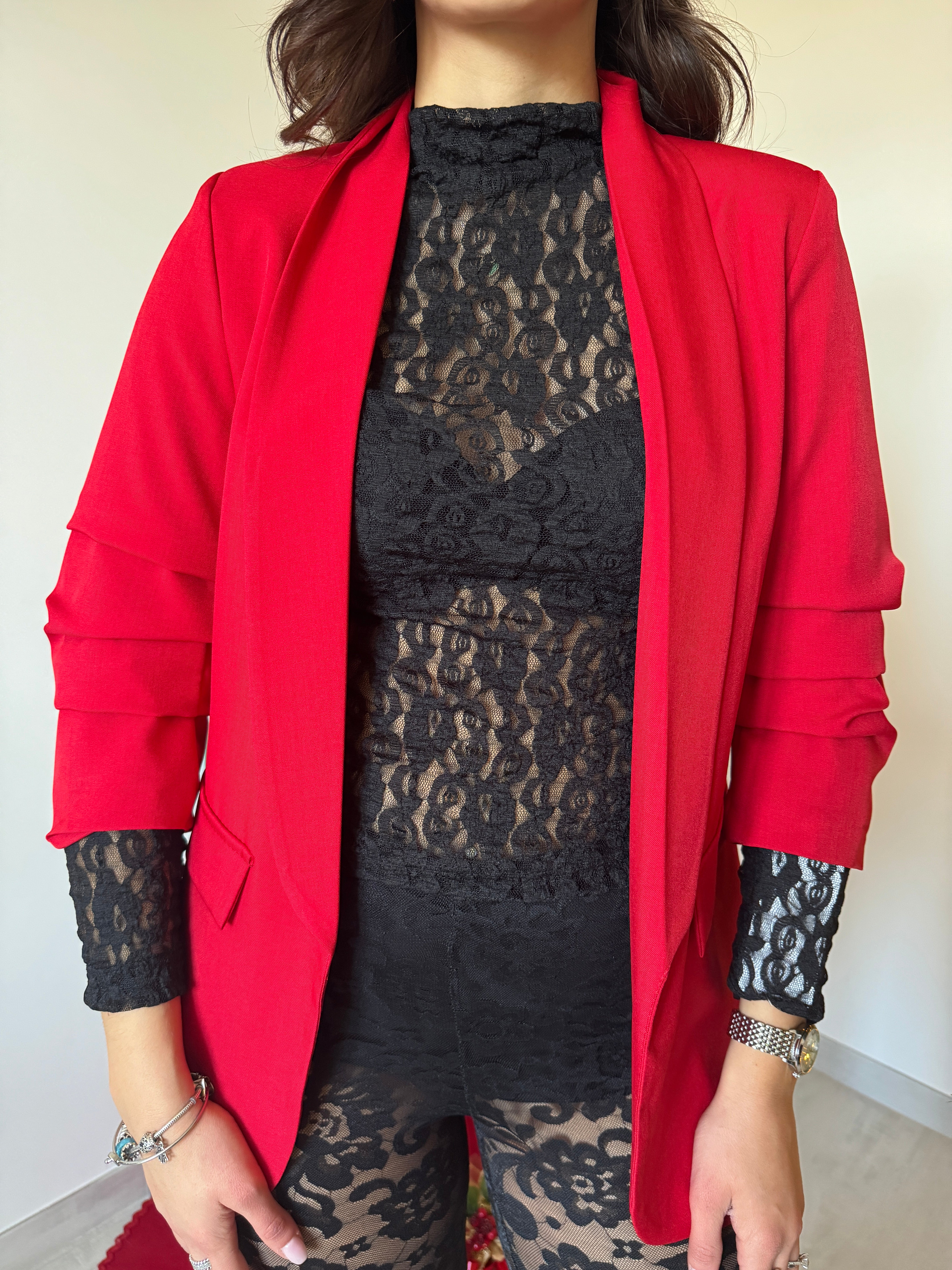 Giacca scivolata con fit regular, spalline interne, manica arricciata e tasche a filo.
