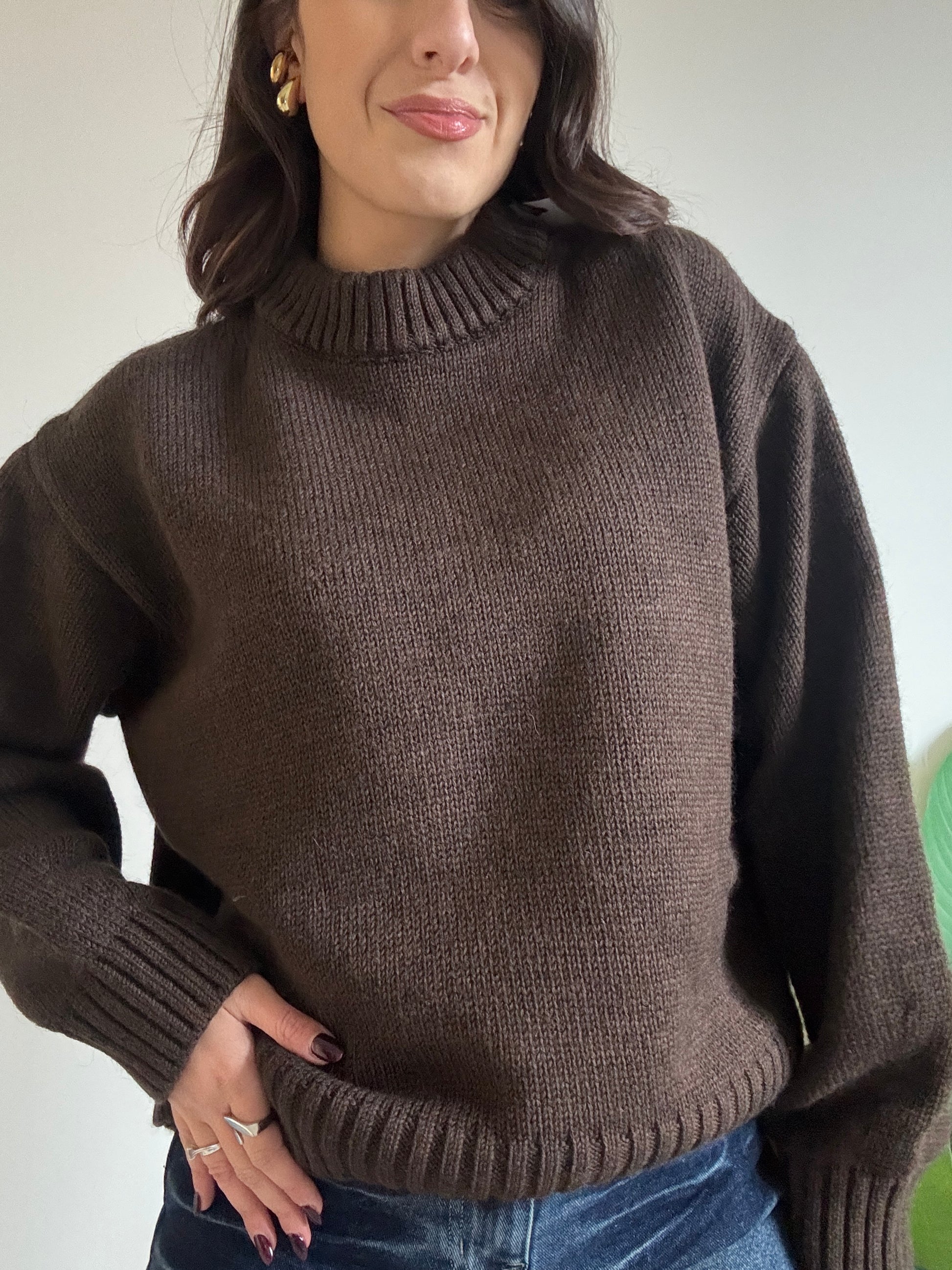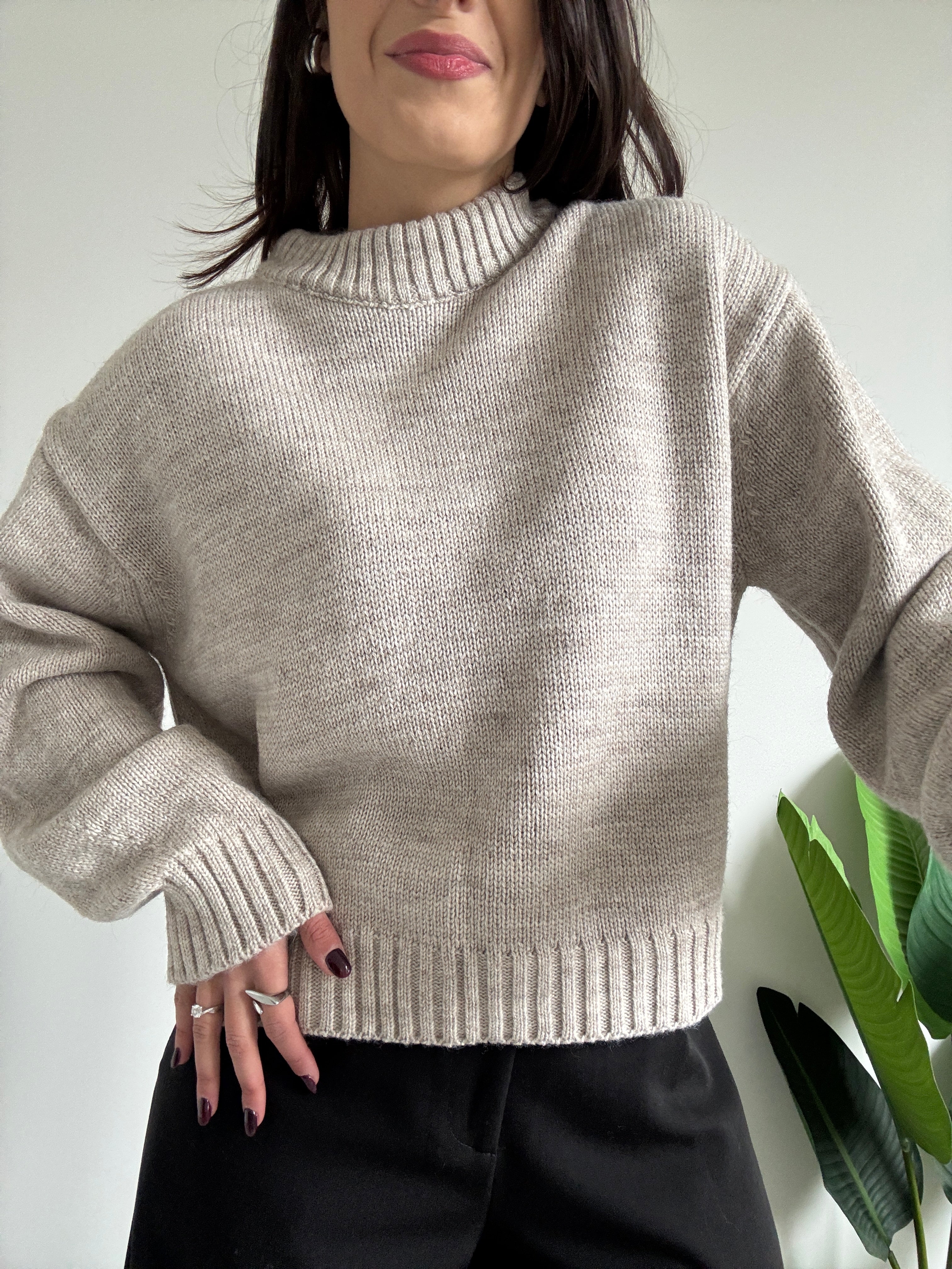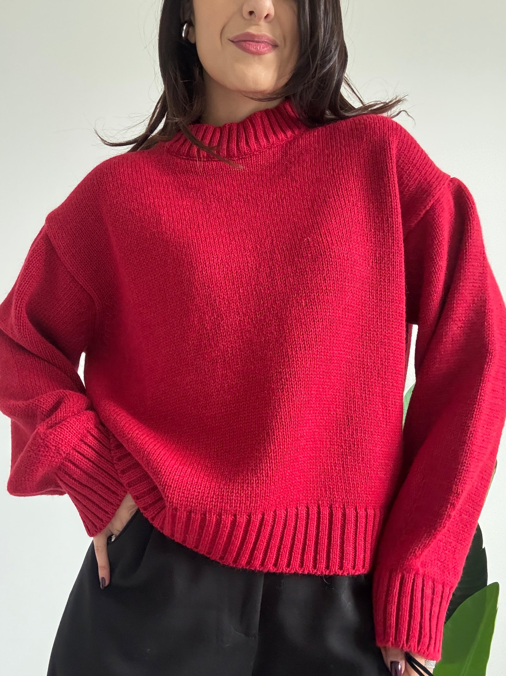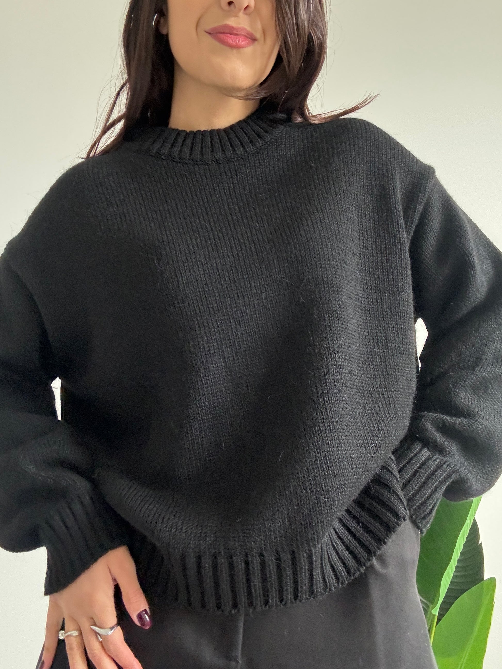 Pull firmato casa Lumina con mezzo collo rifinito, bordo nella parte finale, manica con polsino. Modello over.
